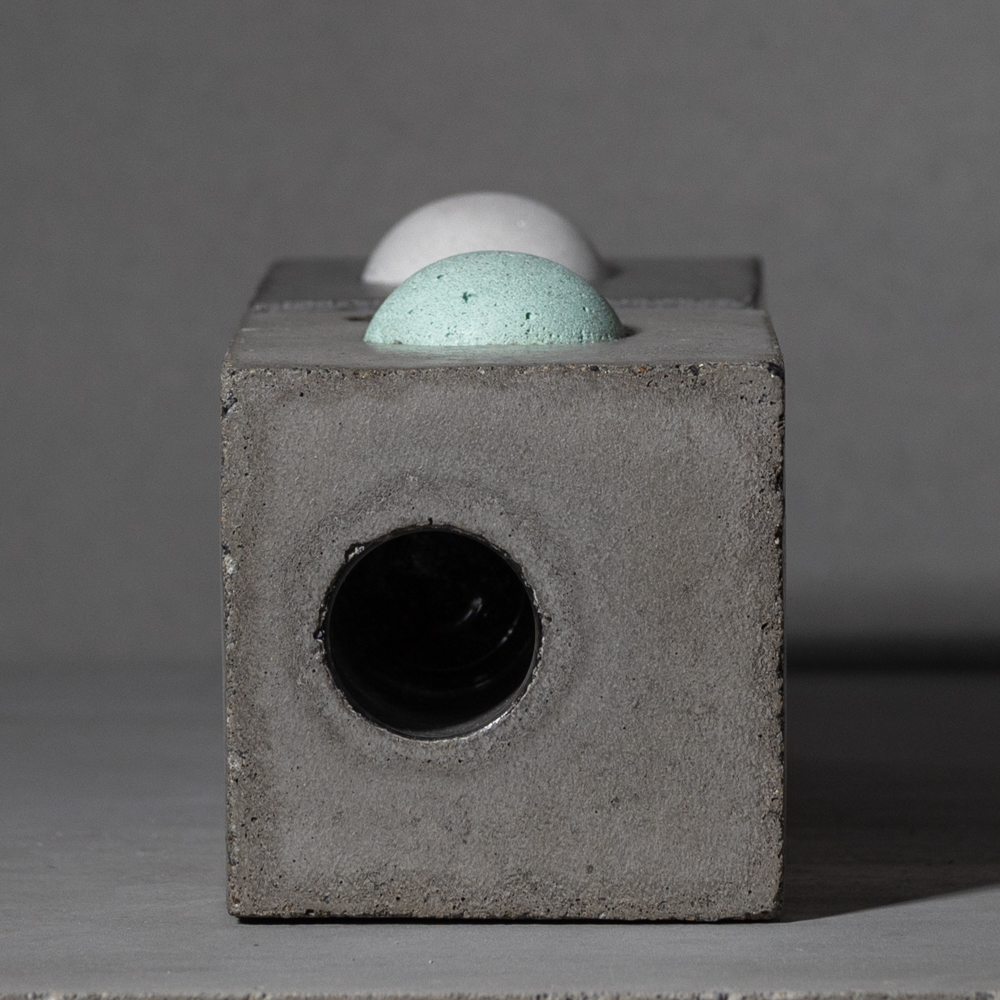 This vase tower features one aqua and one white dome and consists of two sleek monoliths joined together with steel nails. As with all Nakagin dual towers, you can flip it over depending on which style you find more atheistically pleasing.