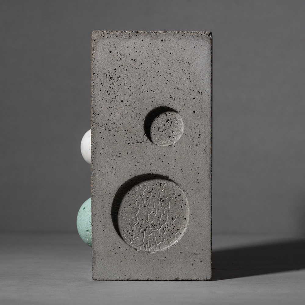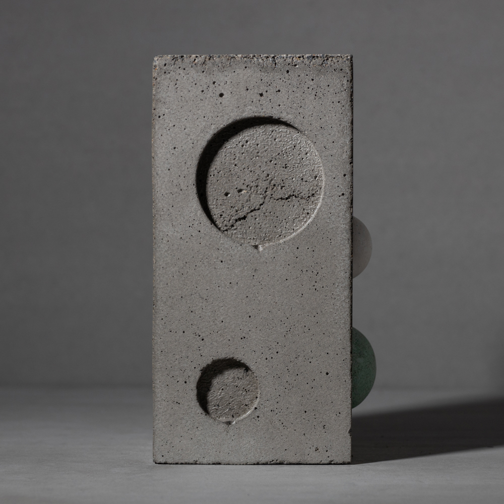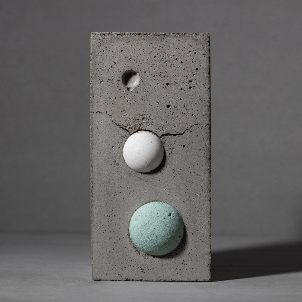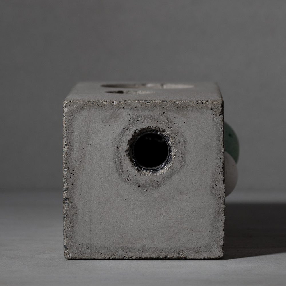 This concrete monolith vase is a minimalist and modern piece of decor that adds a touch of industrial elegance to any space. Crafted from solid concrete and featuring one aqua and one white dome, this vase has a sleek and geometric design, with clean lines and a smooth surface.